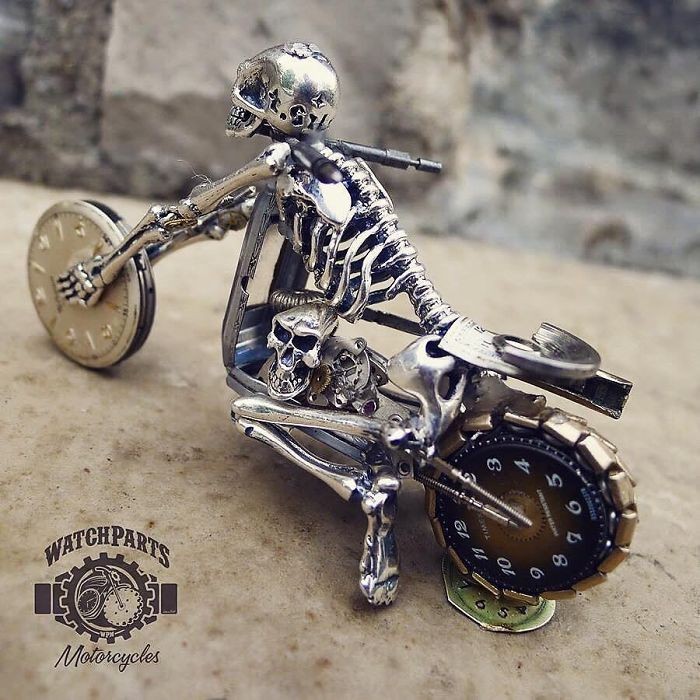 Setiap kreasinya ia bisa menghabiskan waktu 30 sampai 50 jam. (Foto: Instagram/watchpartsmotorcycles)