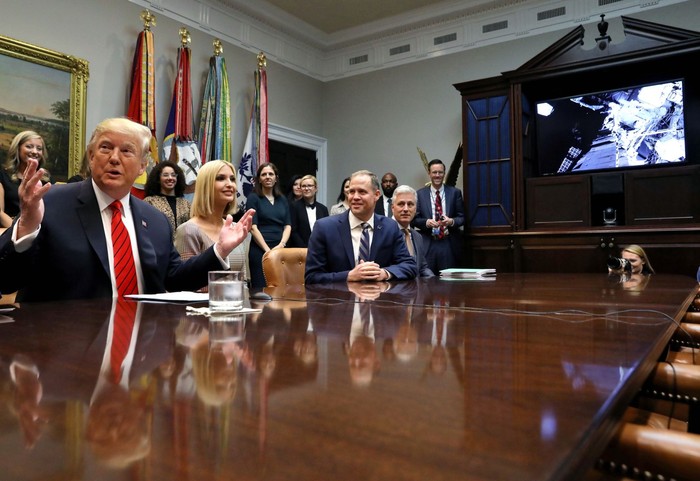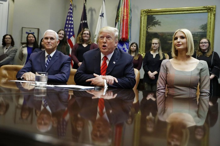 Tampak pula wakil presiden Mike Pence dan Ivanka Trump. Foto: AP