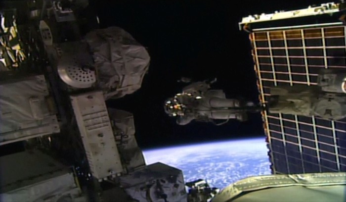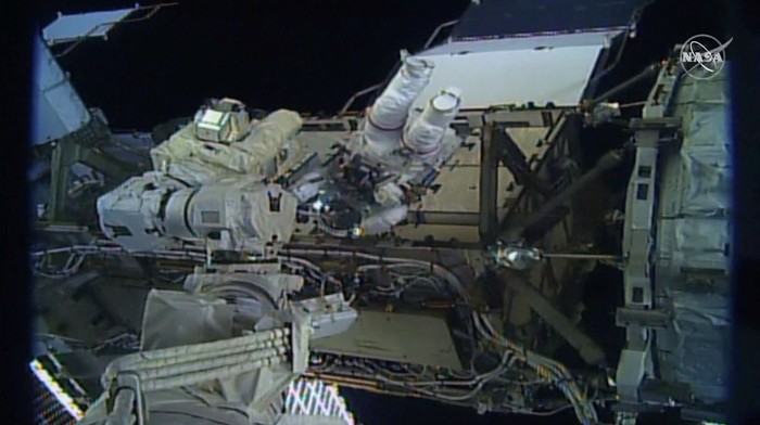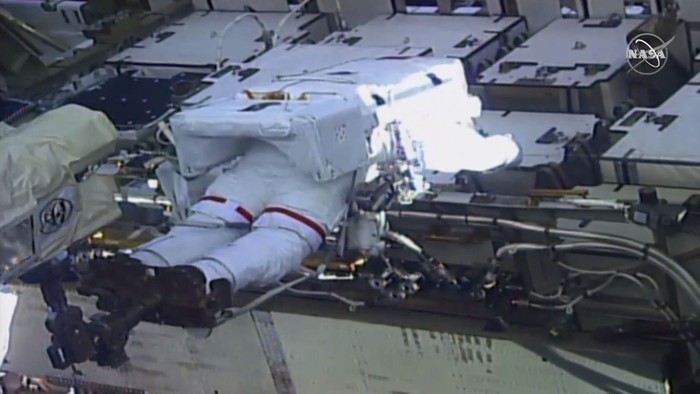 yang bertugas mengganti komponen baterai yang error di bagian luar ISS. Foto: AP