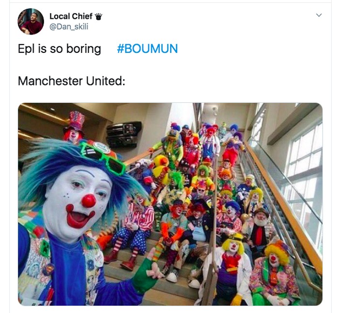 Tim inti maupun tim cadangan MU digambarkan sebagai badut. Foto: Twitter