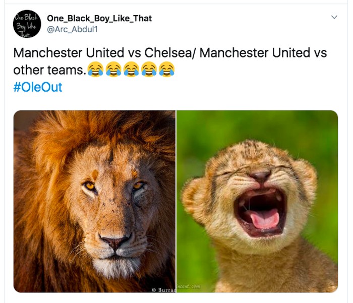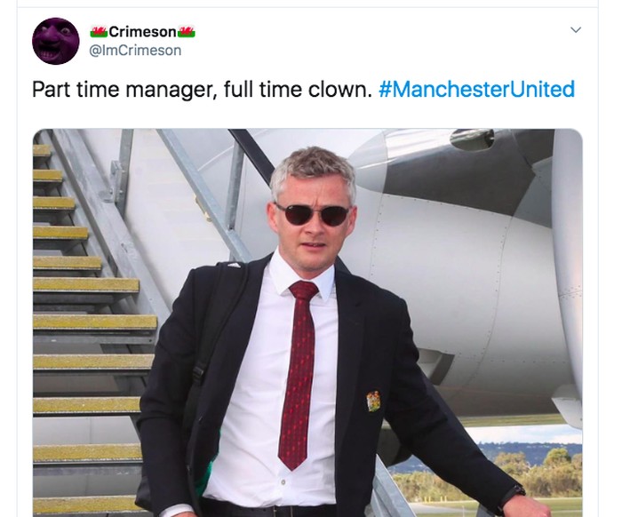 Manager part time, badut full time, demikian sindiran netizen pada Ole Gunnar Solskjaer. Foto: Twitter