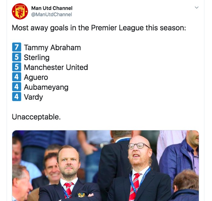 Dibandingkan individu pun, MU kalah dalam hitungan gol away. Foto: Twitter