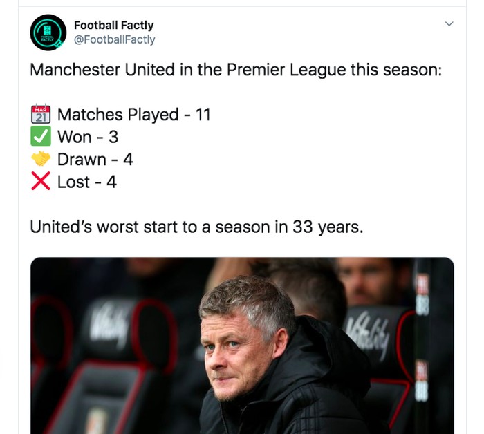 Prestasi MU di bawah asuhan Ole memang memprihatinkan. Foto: Twitter