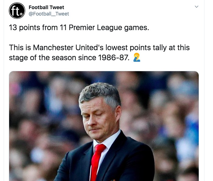 Netizen juga menyuguhkan statistik semacam ini, bahwa 13 poin dalam 11 pertandingan Liga Inggris adalah yang terburuk. Foto: Twitter
