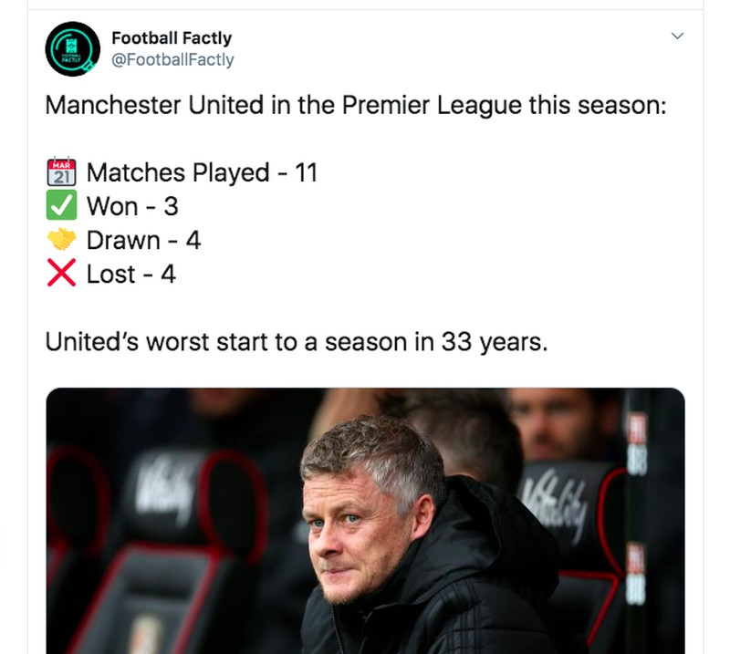 Netizen juga menyuguhkan statistik semacam ini, bahwa 13 poin dalam 11 pertandingan Liga Inggris adalah yang terburuk. Foto: Twitter