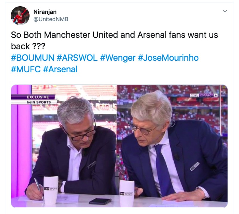Arsenal juga sedang limbung, apa perlu Jose Mourinho kembali ke MU dan Arsene Wenger ke Arsenal lagi? Foto: Twitter