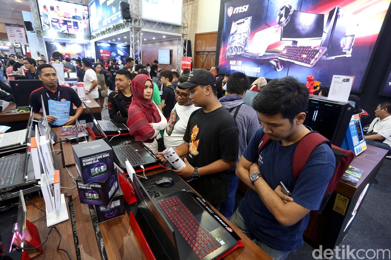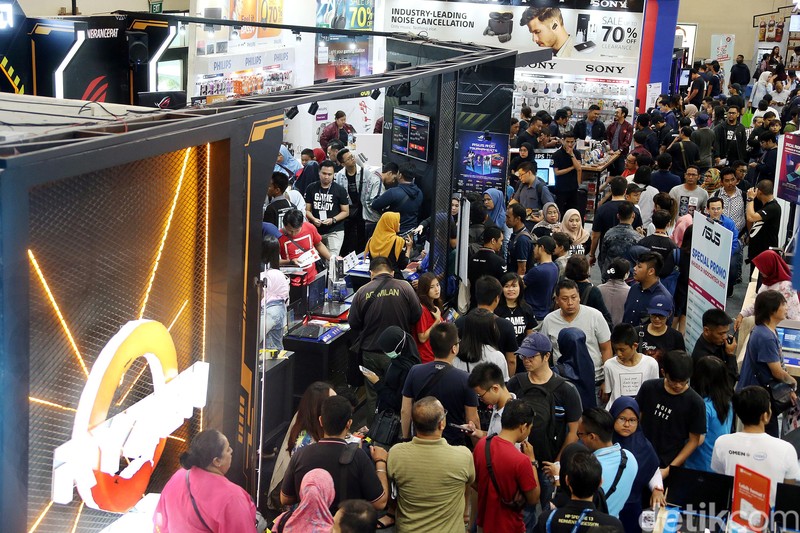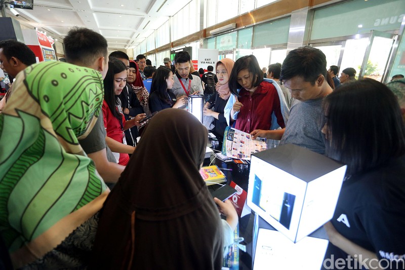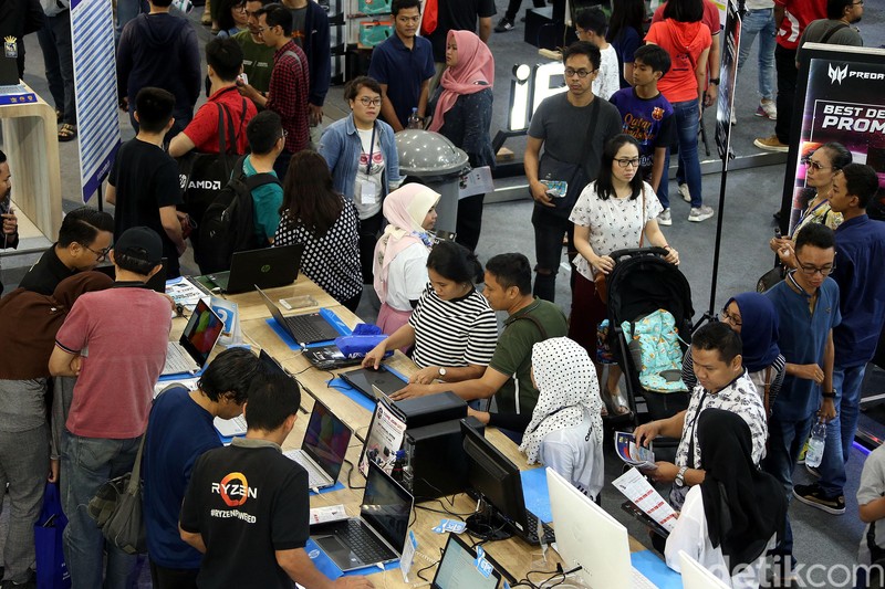 Pameran perangkat teknologi ini menawarkan banyak diskon dan promo menarik untuk mereka yang mencari gadget baru. Foto: Rengga Sancaya