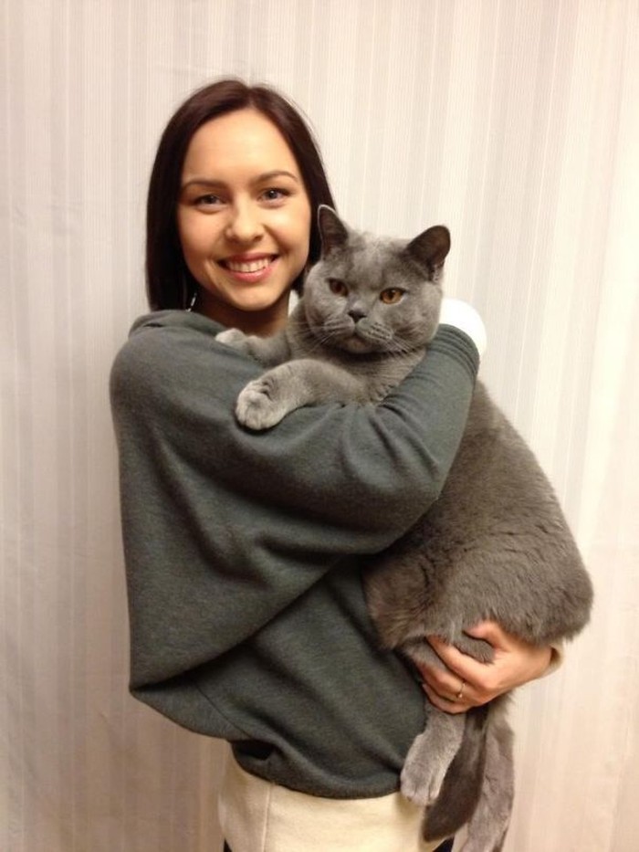 Si pemilik kucing pakai baju warna senada dengan kucing yang digendongnya. Kompak! Foto: via Bored Panda