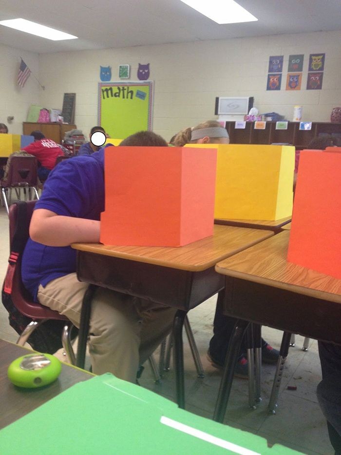 Masing-masing murid pakai 'helm' dari kardus. (Foto: Boredpanda)