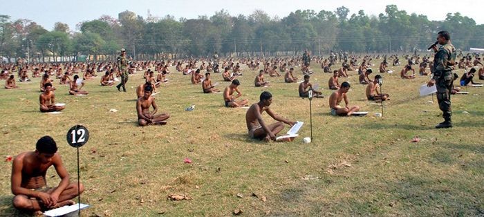 Murid harus buka baju agar tidak ada contekan yang diselipkan. (Foto: Boredpanda)