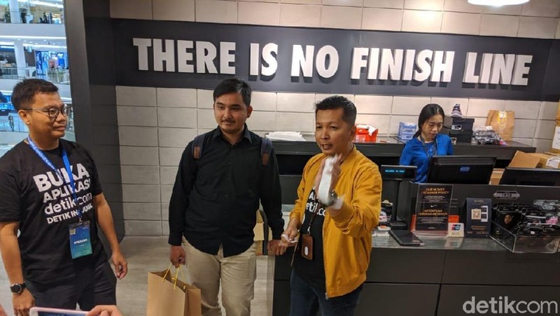 Alam berjalan ke dalam toko sepatu Nike. (Agus Tri Haryanto/detikcom)