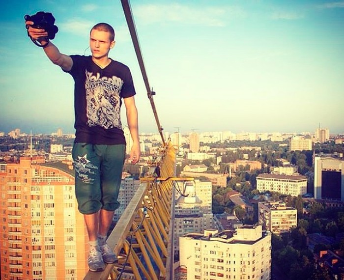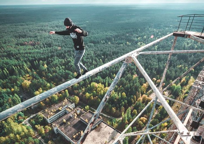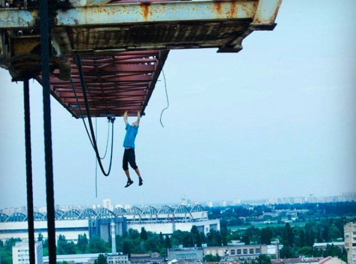 Pavlo Gennadiyovich Ushivets atau naman online-nya Mustang Wanted jadi cukup terkenal karena melakukan aksi ekstrim di ketinggian. Foto: Instagram
