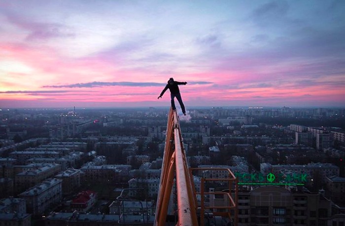 Pemuda Ukraina berusia 32 tahun ini tak segan melakukan aksi berbahaya di gedung tinggi tanpa pengamanan apapun. Foto: Instagram