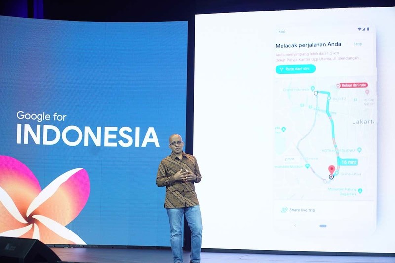 Chandu Thota, Engineering Director Google Maps memperkenalkan beragam fitur baru Google Maps di gelaran Google for Indonesia 2019.