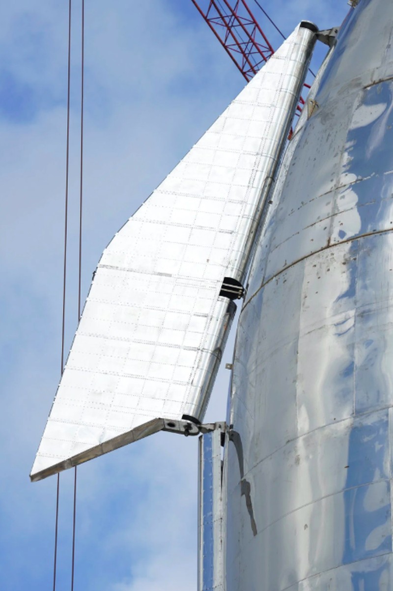 Bagian atas Starship Mk1 dengan dua fin pada sisinya. Foto: Darrell Etherington via Tech Crunch