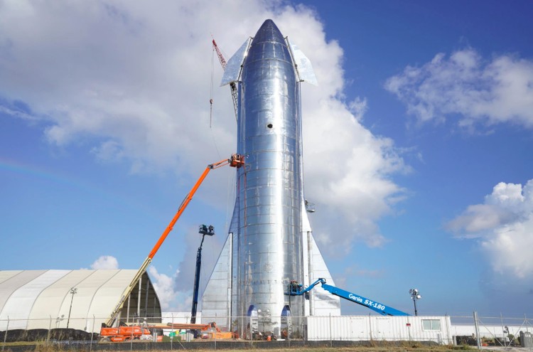 Prototipe Starship Mk1 dikerjakan pagi, siang, malam. Foto: Darrell Etherington via Tech Crunch