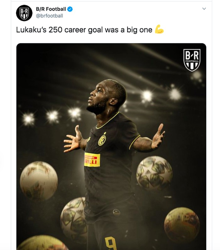 Gol semalam adalah ke 250 buat Lukaku dalam 513 pertandingan. Foto: Twitter