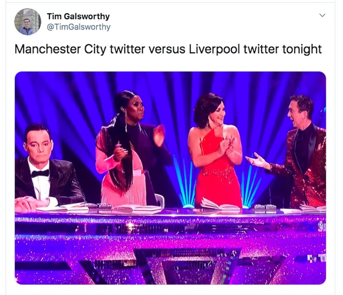 Fans City digambarkan termangu sementara fans Liverpool begitu gembira. Foto: istimewa