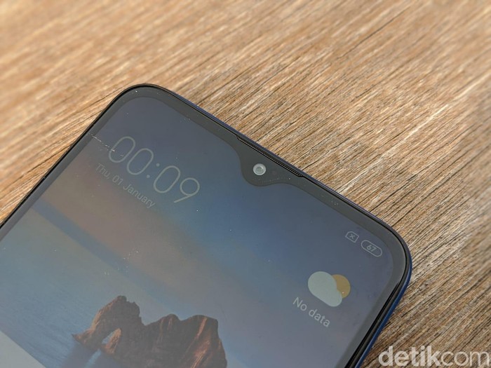 Ponsel ini punya notch tetesan air di mana di sana terdapat kamera berukuran 8 MP. Foto: Adi Fida Rahman/detikINET
