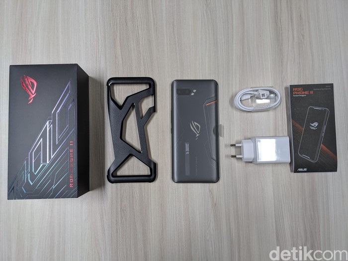 Semua isi di dalam kotak kemasan penjualan ROG Phone 2 di Indonesia.Β Foto: Adi Fida Rahman/detikINET