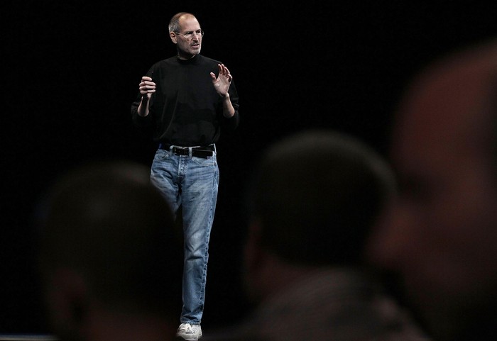 Steve JobsΒ . Mendiang Steve Jobs dikenal dengan penampilannya yang ikonik mengenakan kaus lengan panjang berkerah turtle neck. Tampilan ini dilengkapi dengan celana jeans dan sneakers putih. Gaya santai mantan CEO Apple ini tetap diingat hingga kini. Foto: Foto: Getty Images