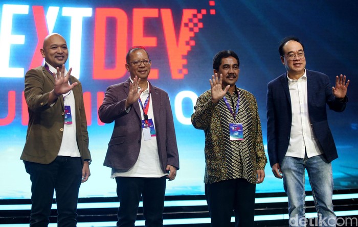 Acting CEO Telkomsel, Dirjen Informasi dan Komunikasi Publik Kominfo dan jajaran membuka Telkomsel The NextDev Summit 2019 yang digelar di Jakarta, Sabtu (7/12/2019).
