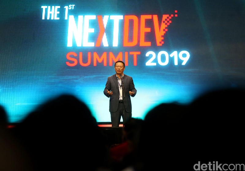 Dirjen Informasi dan Komunikasi Publik Kominfo, Widodo Muktiyo, turut hadir mewakili Menkominfo dalam acara Telkomsel The NextDev Summit 2019.