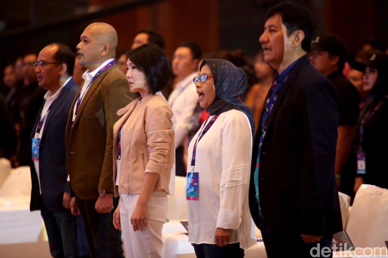 Lagu kebangsaan Indonesia Raya turut dikumandangkan saat Telkomsel The Nextdev Summit 2019 dibuka.