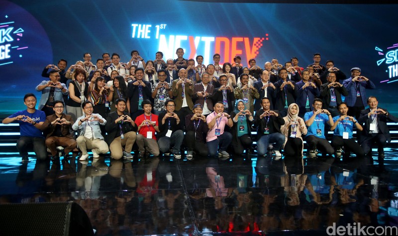 Acting CEO Telkomsel, Dirjen Informasi dan Komunikasi Publik Kominfo dan jajaran membuka Telkomsel The NextDev Summit 2019 yang digelar di Jakarta, Sabtu (7/12/2019).