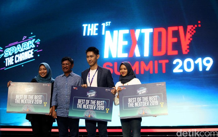 Menkominfo mengumumkan tiga startup yang berhasil meraih predikat Best of the Best di ajang NextDev 2019 yaitu Crowde, Ravenry dan Ibunda.