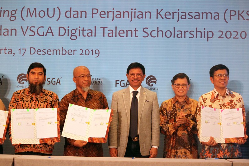 Kominfo hari ini menandatangani nota kesepahaman dengan 88 perguruan tinggi di Indonesia untuk menjadi mitra program Digital Talent Scholarship, program pemerintah untuk menyediakan tenaga dalam bida teknologi informatika. Pool/Kominfo.