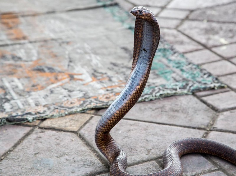 Ular kobra paling berbisa di dunia dipimpin oleh Kobra India (Naja naja) yang mengalahkan King Cobra. Nama aliasnya Binocellate Cobra karena punya pola 2 lingkaran di lehernya. Ular ini ditemukan di India dan negara tetangganya. Kematian pada manusia antara 15 menit dan 2 jam setelah gigitan. (iStock)