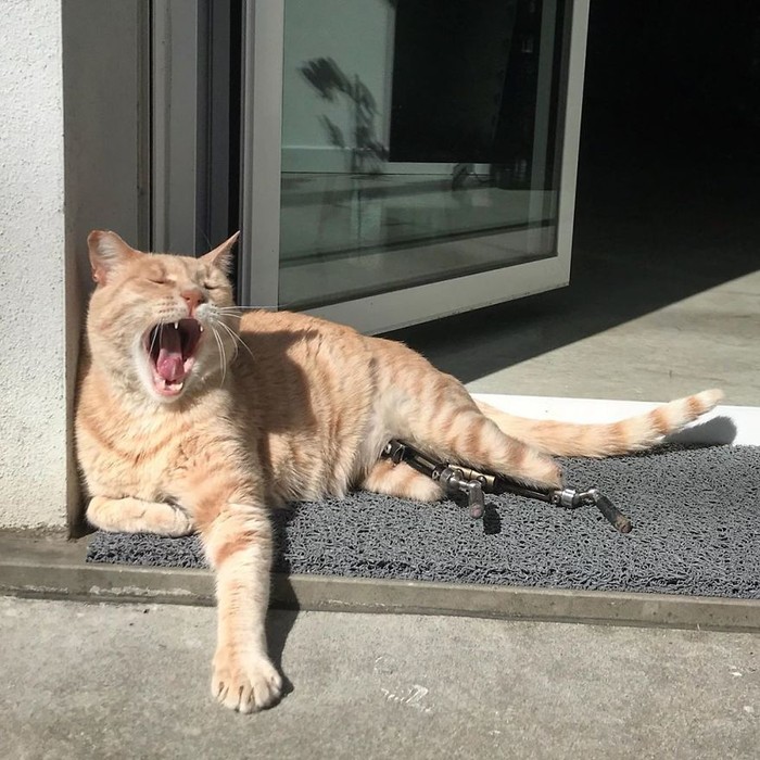 Kini Vito kembali seperti biasanya dengan kaki barunya. Foto: vituzzosuperstar via boredpanda