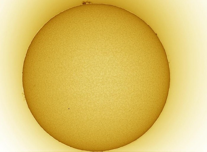 Transit Merkurius, 11 November 2019. Titik hitam kecil pada gambar ini adalah Merkurius. Transit Merkurius yang jarang melintasi permukaan Matahari terjadi selama lima jam pada bulan November. Ini adalah terakhir kalinya planet bagian dalam yang kecil ini melakukan perjalanan visual tersebut sampai 2032.Β Foto: via Forbes