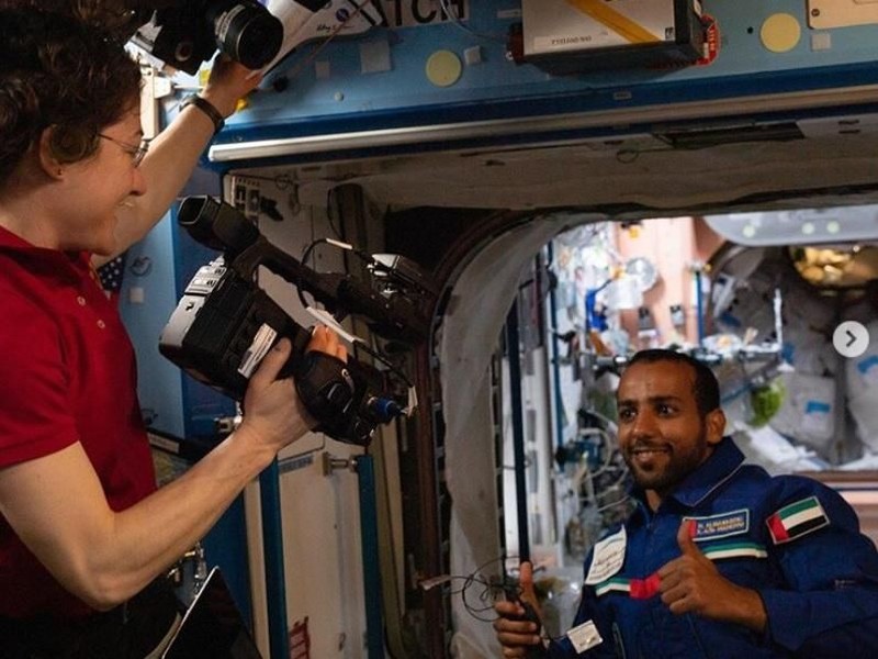 Selama di sana, banyak aktivitas yang dilakukannya. Ini potret ketika Koch merekam astronot dari Uni Emirat Arab saat tour di ISS. Foto: Instagram @astro_christina