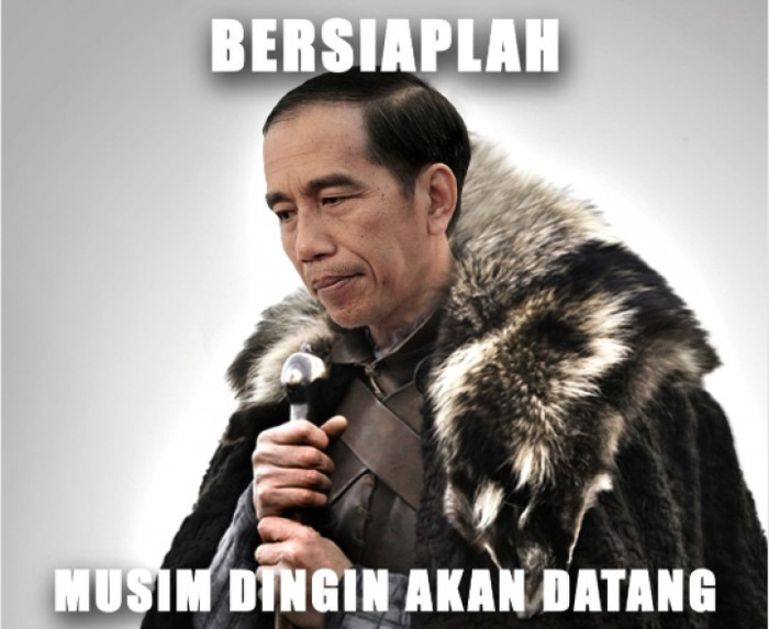 Meme Winter is Coming juga ada versi Jokowinya gegara dia mengucapkan kalimat itu dalam forum IMF-Bank Dunia dan jadi materi promosi oleh HBO (Pool)