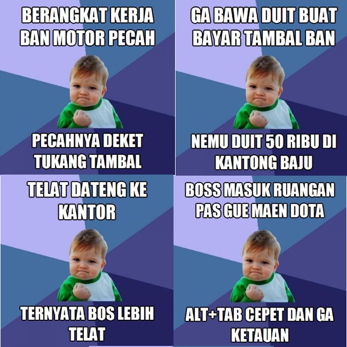 Meme itu juga populer di Indonesia dan melahirkan banyak ide kreatif yang lucu-lucu yang bertema keberuntungan (Pool)