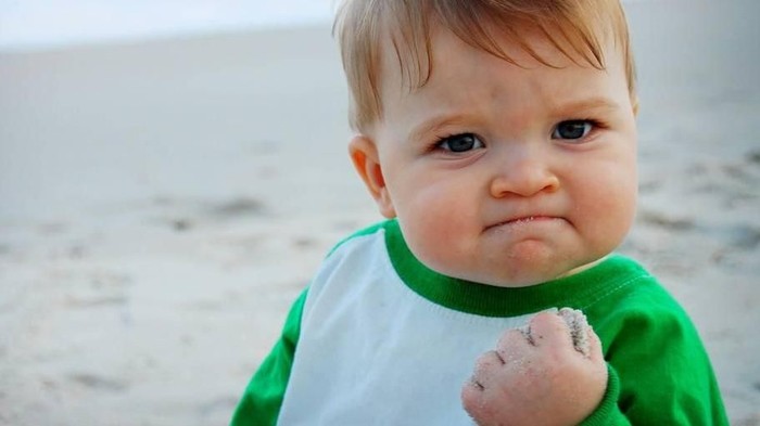 Meme bocah imut ini namanya Success Kid. Aslinya ini adalah foto Sammy Grinner, balita berusia 11 bulan. Meskipun fotonya dibikin tahun 2007, ia baru meledak jadi meme viral dunia tahun 2011 (Pool)