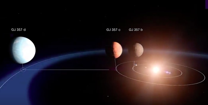 GJ 357 d. Satu lagi 'harta karun' dari kumpulan exoplanet yang punya kemungkinan bisa dihuni, yaitu dua bintang kerdil bernama GJ 357 c dan d. GJ 357 d dapat diklasifikasikan sebagai 'super-Bumi' yang sedikit lebih besar dari planet kita dan berpotensi lebih layak huni. Sementara GJ 357 b disebut Bumi panas. Artinya, meski ukurannya mungkin seperti Bumi, permukaannya jauh lebih panas dari Bumi. Foto: NASA
