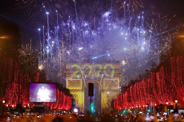 Pesta kembang api di Arc de Triomphe di Paris, Prancis. Foto: AP Photo/Christophe Ena
