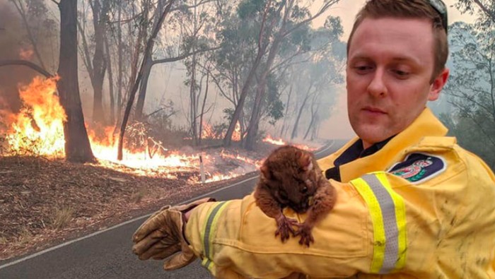Seekor koala diselamatkan pemadam kebakaran. Sedih banget lihatnya... Foto: Bored Panda