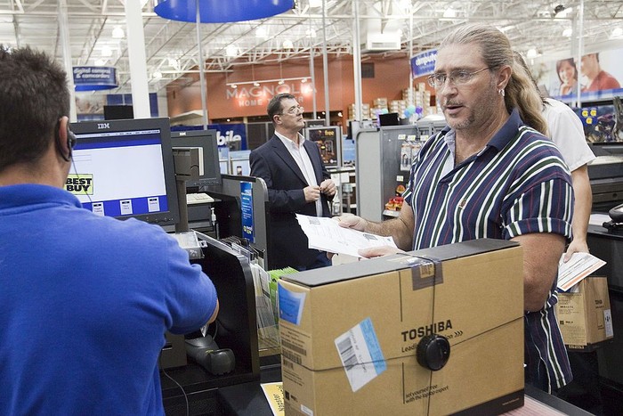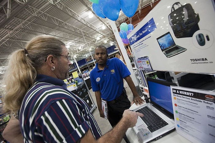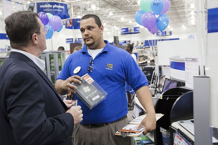 Konsumen menanyakan informasi soal kelebihan Windows 7. Foto: Getty Images
