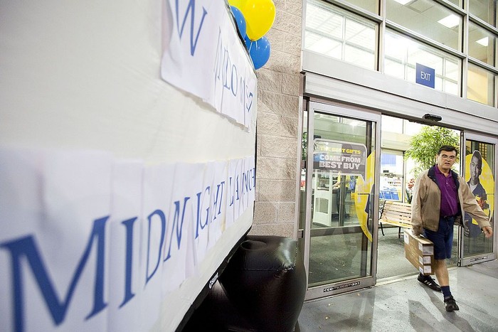 Persiapan sebelum peluncuran Windows 7 di Amerika Serikat, menjelang tanggal 22 Oktober 2009. Foto: Getty Images