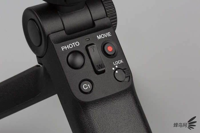 Terdapat tombol remote pengoperasian. Sisi kiriΒ tombol shutter fotoΒ dan C1, di tengah ada tombol zoom, sementara di sisi kanan ada tombol move dan lock.