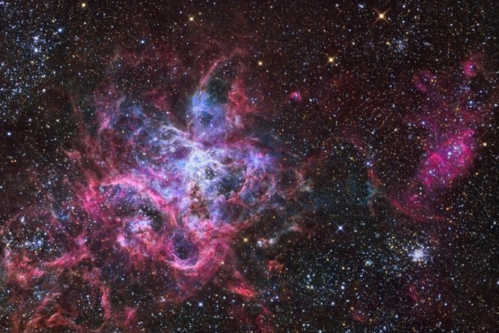 Nebula Tarantula, nebula terbesar. Nebula Tarantula tak sekadar wilayah pembentuk bintang paling aktif di galaksi kita, tetapi juga menjadi Nebula terbesar yang diketahui. Nebula ini membentang lebih dari 1.800 tahun cahaya sepanjang rentang terpanjangnya, berjarak sekitar 170.000 tahun cahaya dari Bumi. Berbasis di Large Magellanic Cloud - galaksi satelit kecil yang mengorbit di Bima Sakti, Tarantula menampung lipatan gas yang indah. Di dalam gas dan debu ini, bintang-bintang muda terus dilahirkan. Foto: via Brainberries