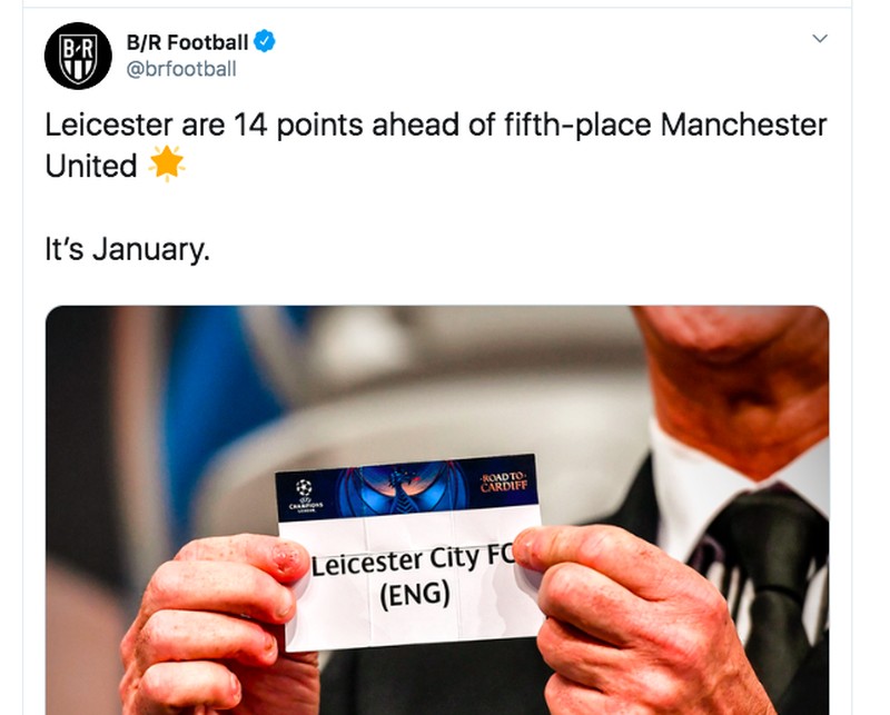 Jika dibandingkan, selisih nilai antara MU dengan Leicester City adalah 14 poin. Sungguh terlalu. Foto: Twitter