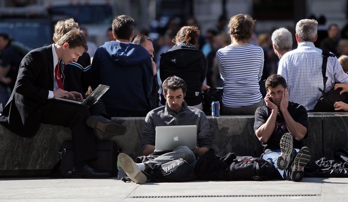 Bahkan ada yang rela menginap di depan Apple Store lantaran ingin menjadi yang pertama. Foto: David Goldman/Getty Images