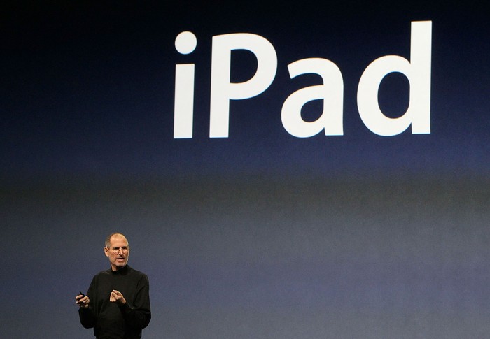 Steve Jobs saat memperlihatkan iPad generasi pertama. Foto: Justin Sullivan/Getty Images