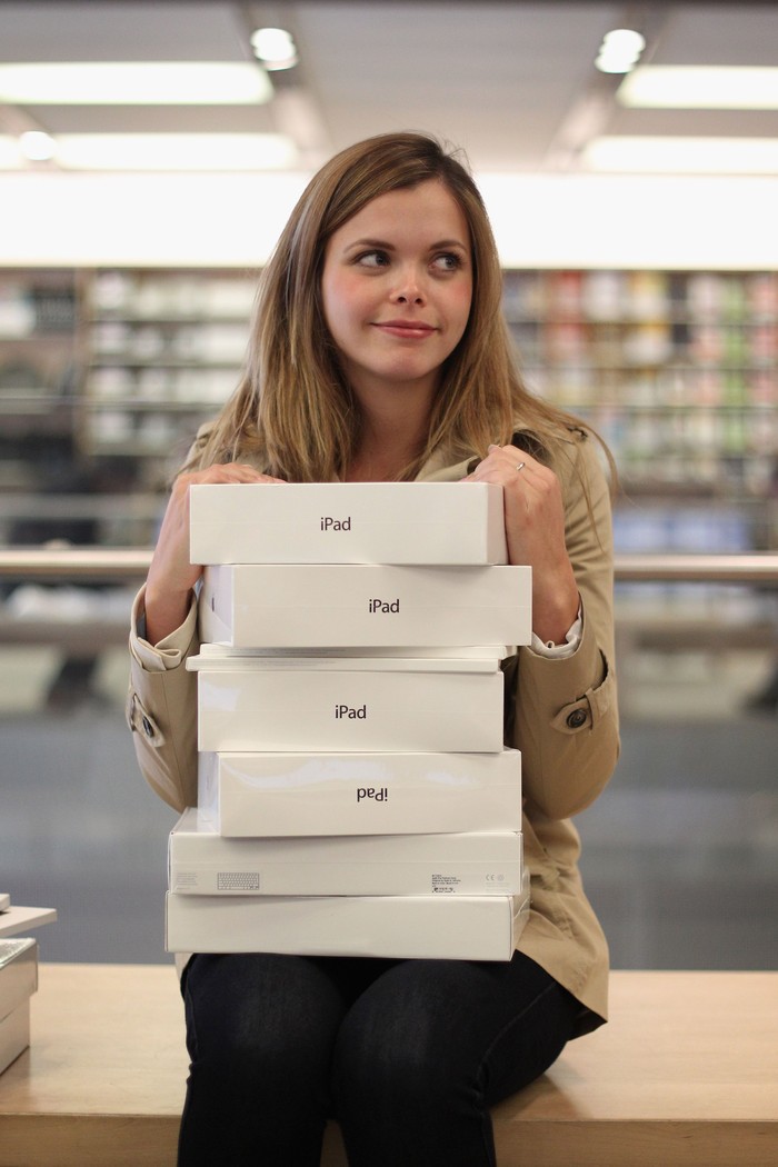 Seorang konsumen yang memborong beberapa unit iPad. Foto: Dan Kitwood/Getty Images