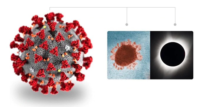 Ukuran virus sangat-sangat kecil. Sebagai gambaran, kalian harus membagi satu milimeter pada penggaris menjadi sejuta bagian untuk mengukurnya. Foto: dari kiri: (1) CDC. (2) University of Hong Kong on Twitter/John Nicholls, Leo Poon dan Malik Peiris. (3) YouTube/Doherty Institute. Montage by ITGD Design Team/Vikas Vashisht.